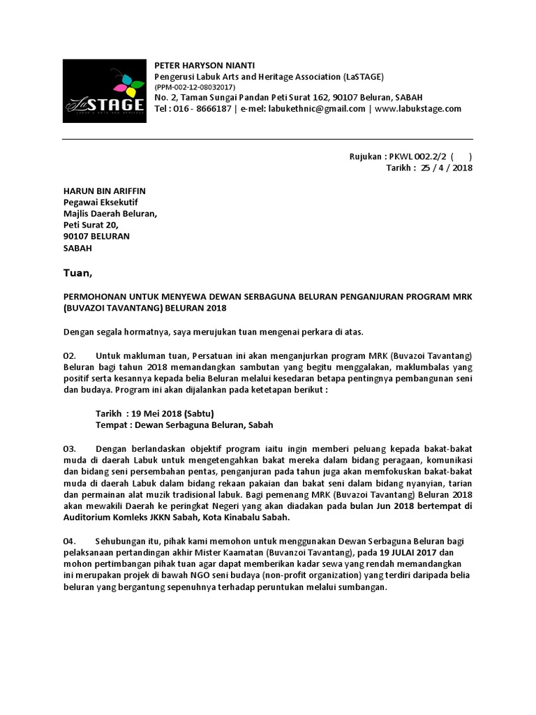 Surat Permohonan Dewan Pdf